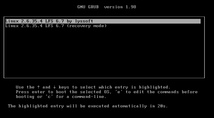 这是个细节问题,因为Linux中是区分大小写的,所以要格外注意。因为我是一边在VMWare中操作,一边看LFS Book,LFS Book不是最大化的显示,所以输入指令的时候不容易区分大小写,像C和c,S和s,容易出错,结果编译不过去,仔细一些就可以了安装完成LFS后,启动出现问题